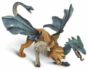 Emerging from a tunnel on the far end of the chamber is a hybrid monstrosity that, until now, you had thought only existed in myth. In appearance, it most closely resembles a large, adult male lion, but with the added heads of a dragon and a goat. Each one of its four powerful paws sport deadly, razor-sharp talons and in lieu of a lion’s tail is the head and body of a venomous serpent.